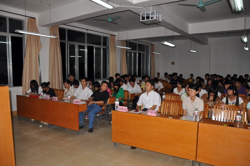 为顺应社会发展需求,培养、提高同学们沟通等方面的能力,丰富同学们的课余生活,2009年11月11日晚,旅游休闲系2009级烹饪工艺与营养班的同学在班主任的指导下,在学院C栋501教室,自行组织、策划成功举办了一场自由演讲比赛。比赛邀请旅游休闲副系主任杜翰潮、办公室副主任罗家斌、各班班主任、辅导员及专业授课教师担任此次活动的评委。